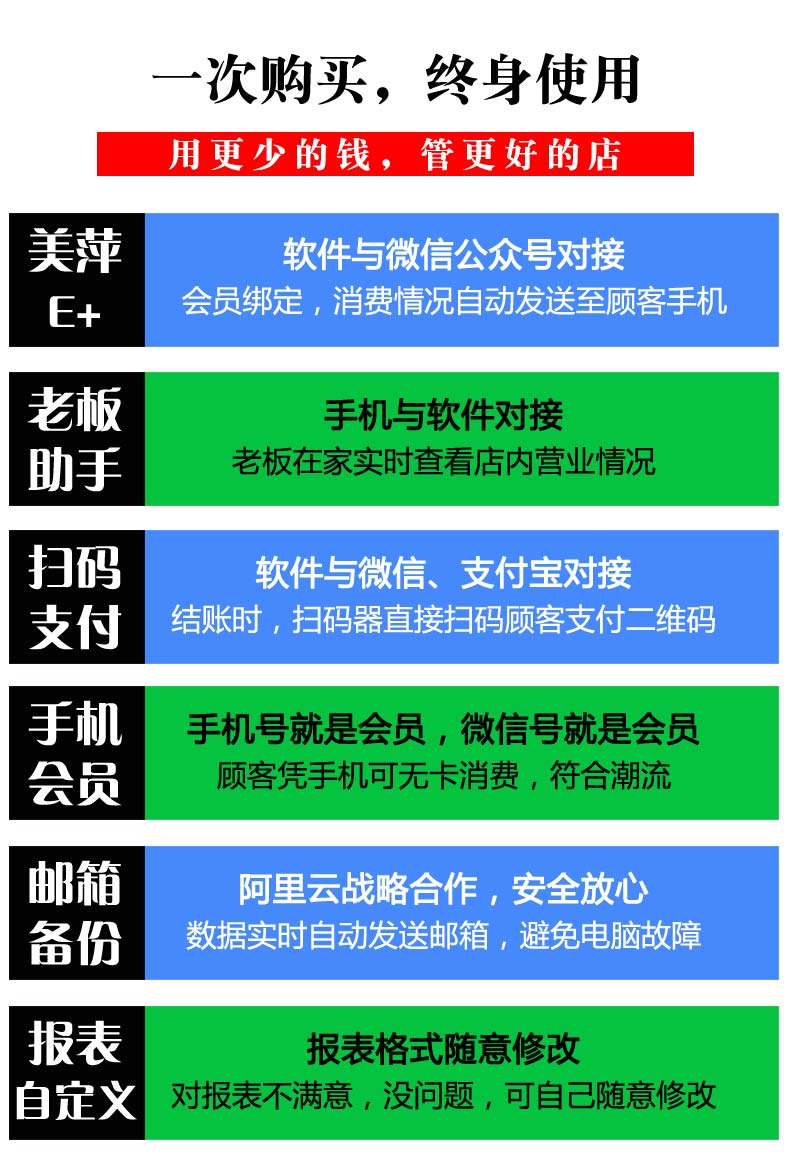系统维护:数据库备份/恢复,系统初始化,操作员修改密码,年终结算,查看日志,打印条码,赠品管理。