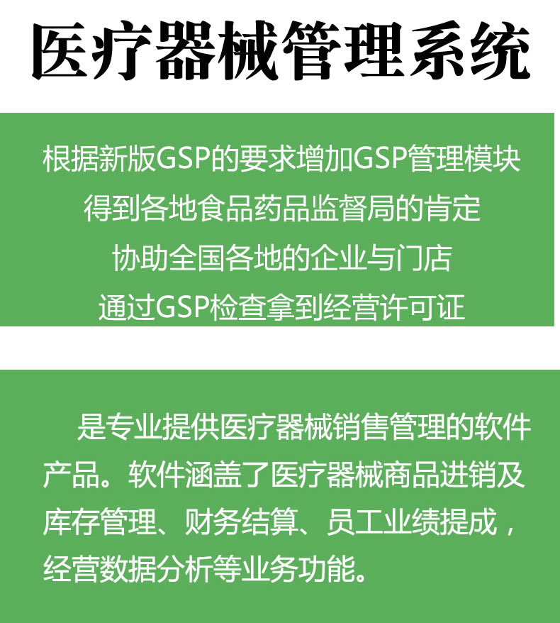 我们为广大二、三类器械公司提供办证验收时,功能保过的医疗器械gsp软件:医疗器械经营管理软件 医疗器械经营软件 三类医疗器械管理系统 医疗器械进销存软件 三类医疗器械软件