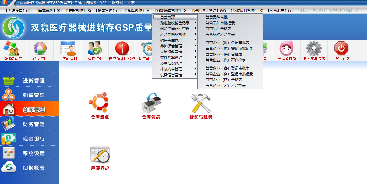 双赢医疗器械进销存GSP质量管理系统(二三类GSP验收认证软件,医疗器械进销存软件,双赢软件)